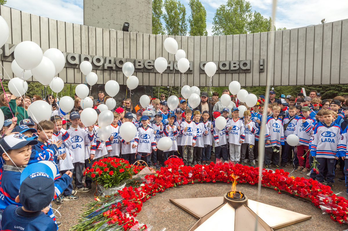 Накануне Дня Победы, 8 мая, воспитанники хоккейной школы «Лада» вместе с заместителем генерального директора по работе ДЮСШ Сергеем Кутузовым и родителями посетили Парк Победы, чтобы возложить цветы к Вечному огню у мемориала павшим в борьбе с фашизмом и почтить память жертв Великой Отечественной войны.